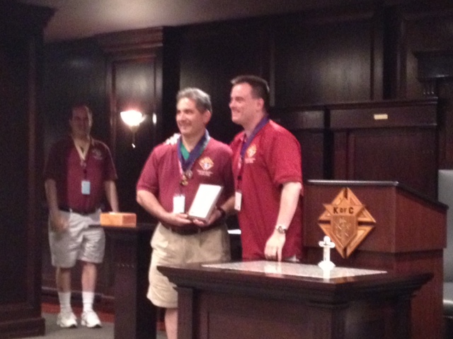 GKnightpresentation Published July 30, 2013 at 640 × 480 in GKnightpresentation Past Grand Knight Mike Colaluca accepts an award for his years of service to the Council from current Grand Knight George Ribellino.