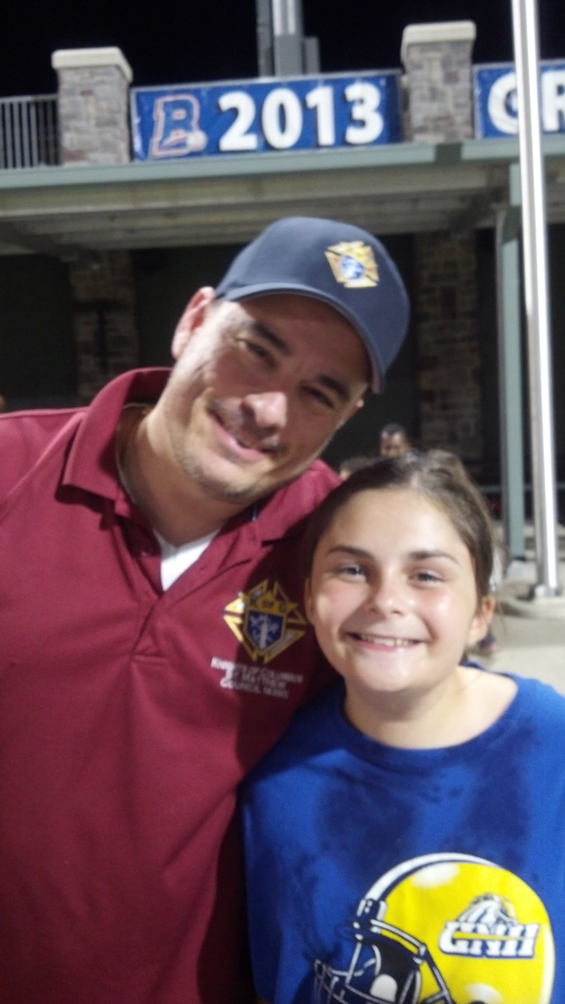 IMG_20130824_202421_426 Published October 6, 2013 at 1840 × 3264 in IMG_20130824_202421_426 Grand Knight George Ribellino, Jr. enjoying a ballgame with his daughter.